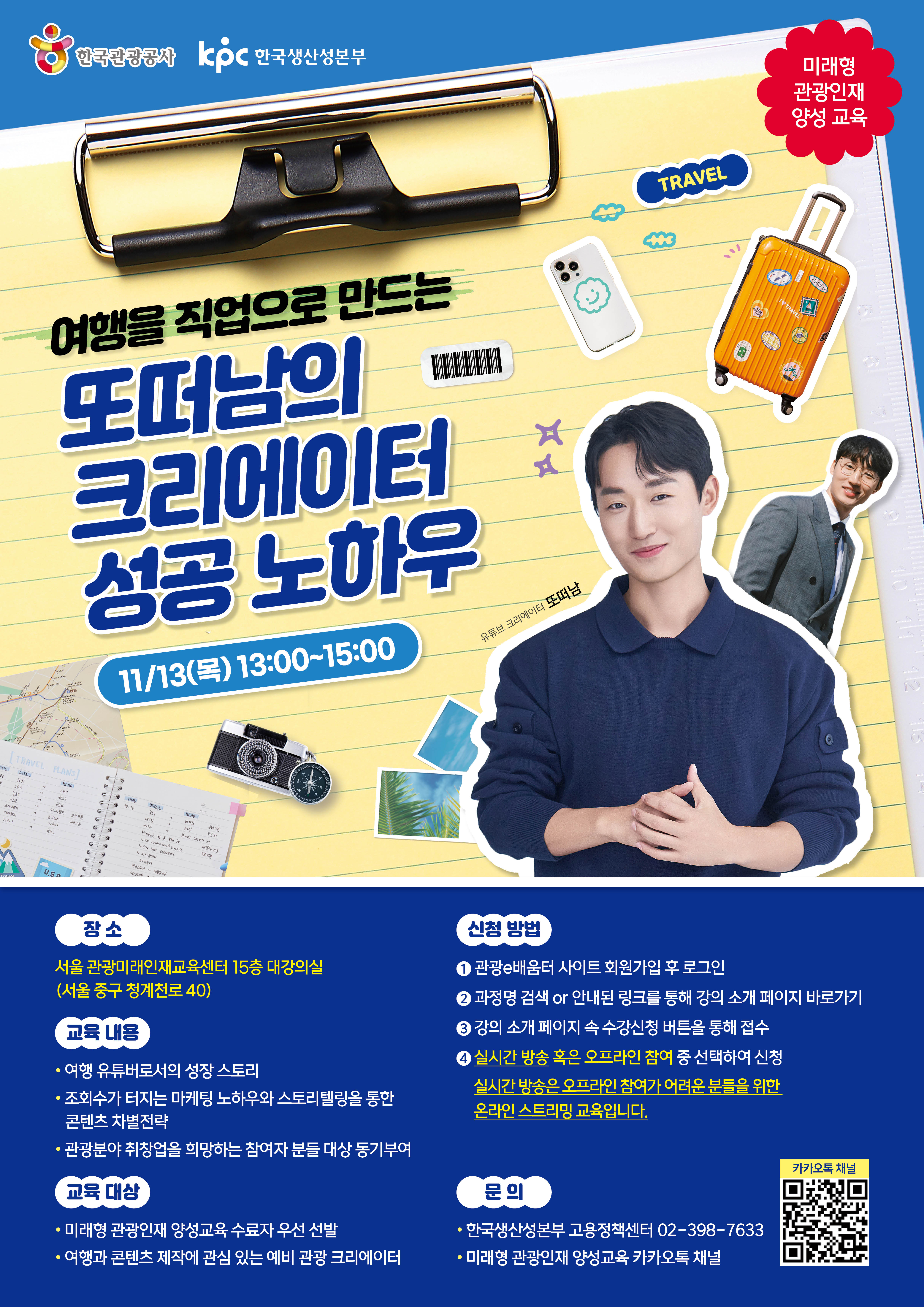 [오프라인 교육][미래형 관광인재 양성 교육] 여행을 직업으로 만드는 또떠남의 크리에이터 성공 노하우 ▶ 일시/장소