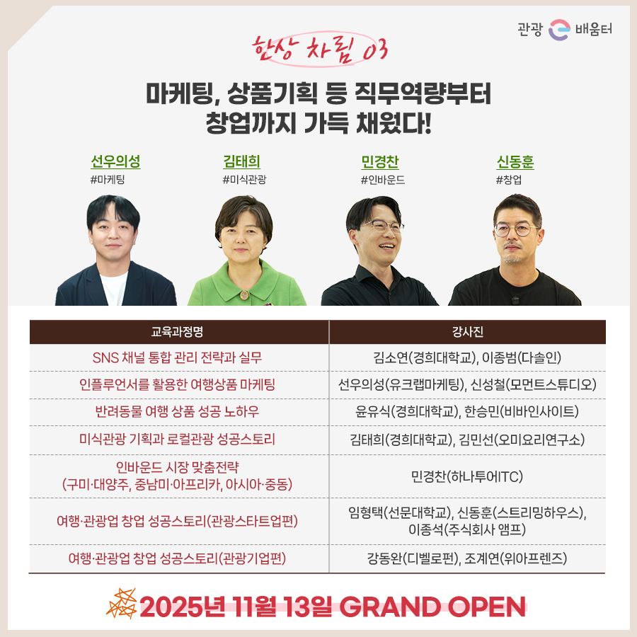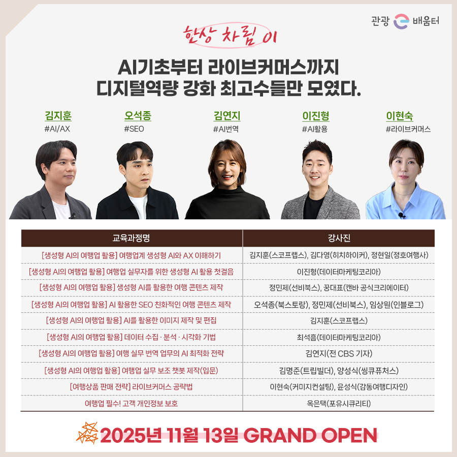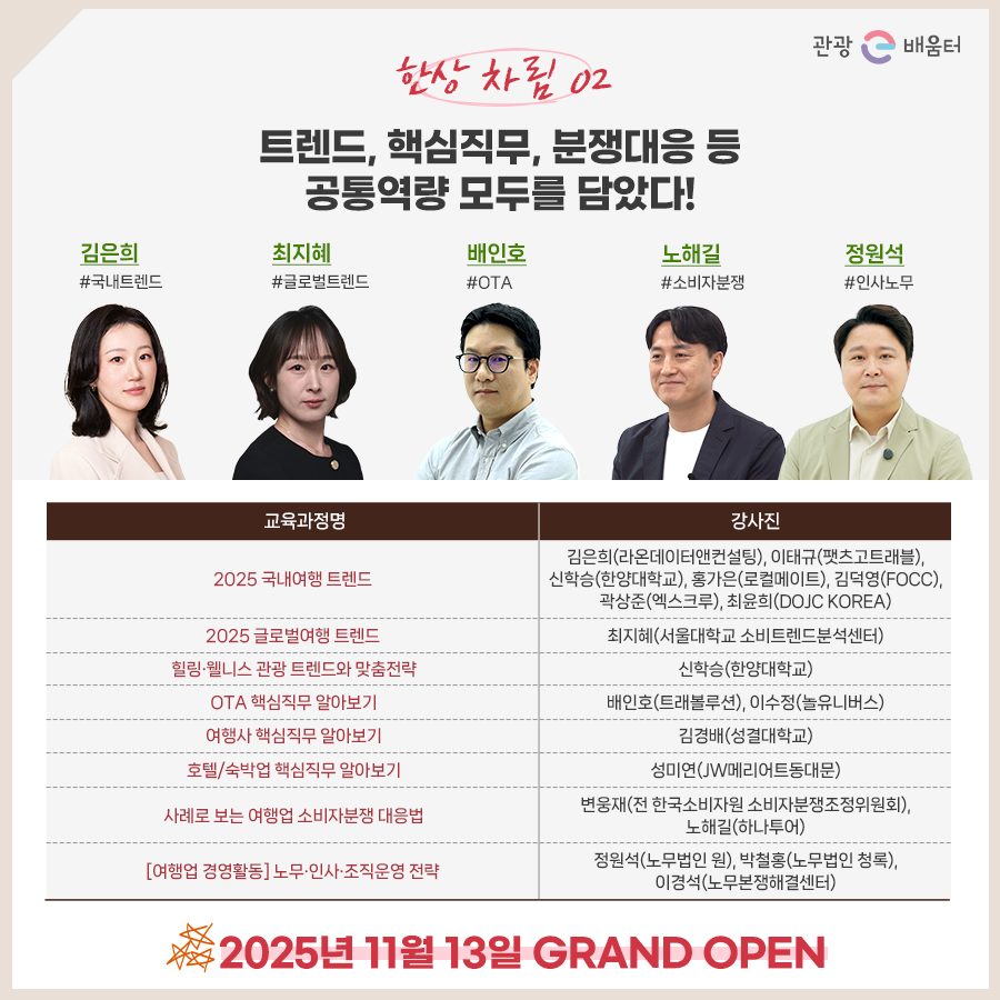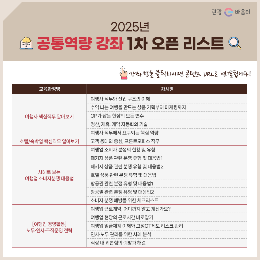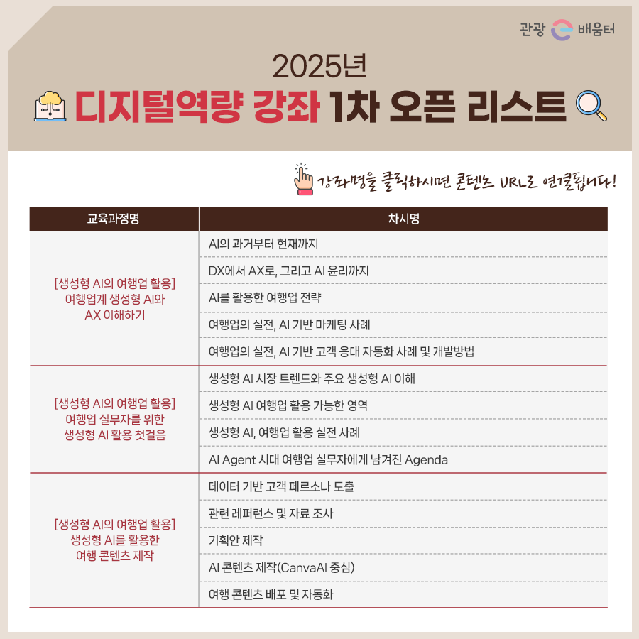[카드뉴스_2025 신규강좌 소개] 콩심은데 콩나고 관광e배움터에 신규 콘텐츠 난다