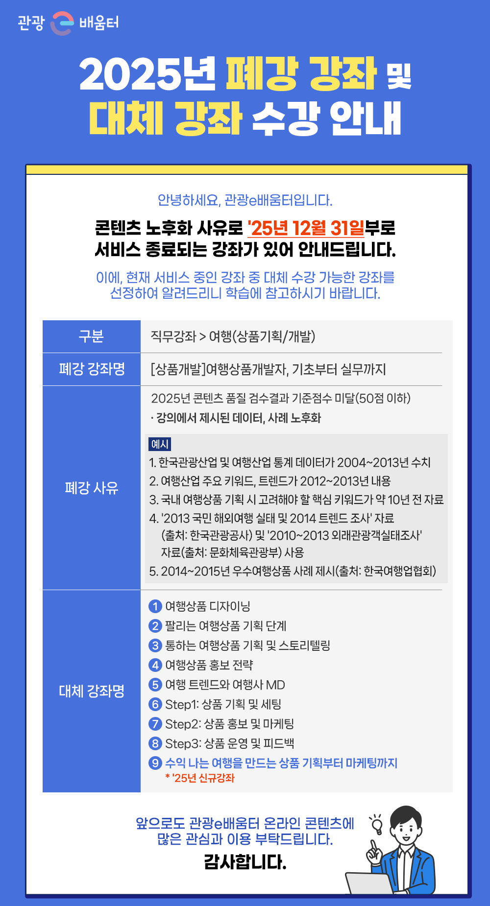 [공지] 2025년 폐강 강좌 및 대체 강좌 수강 안내