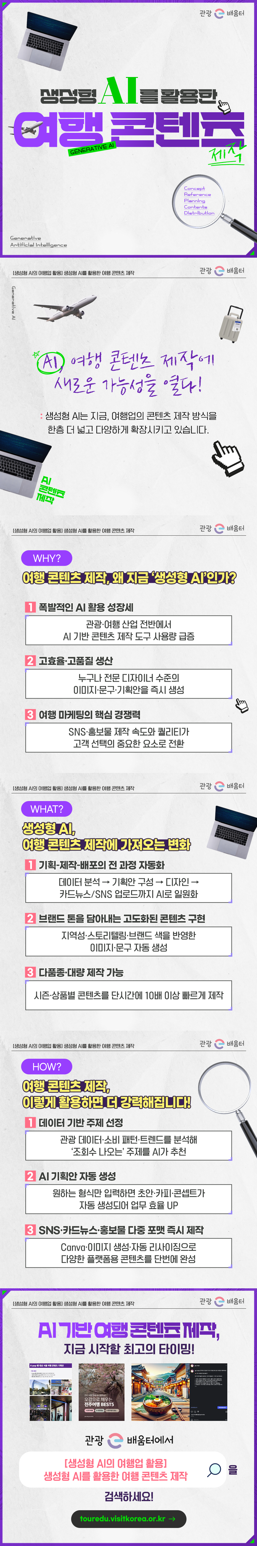 직무강좌 "생성형 AI를 활용한 여행 콘텐츠 제작" 에서 확인하세요!